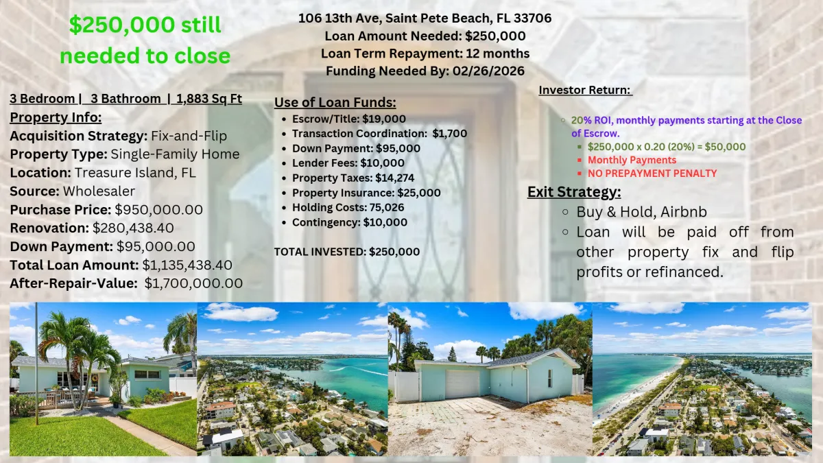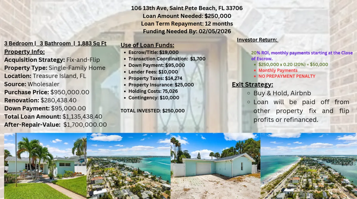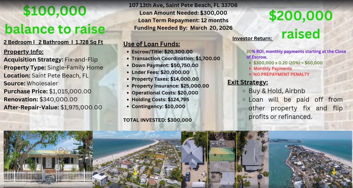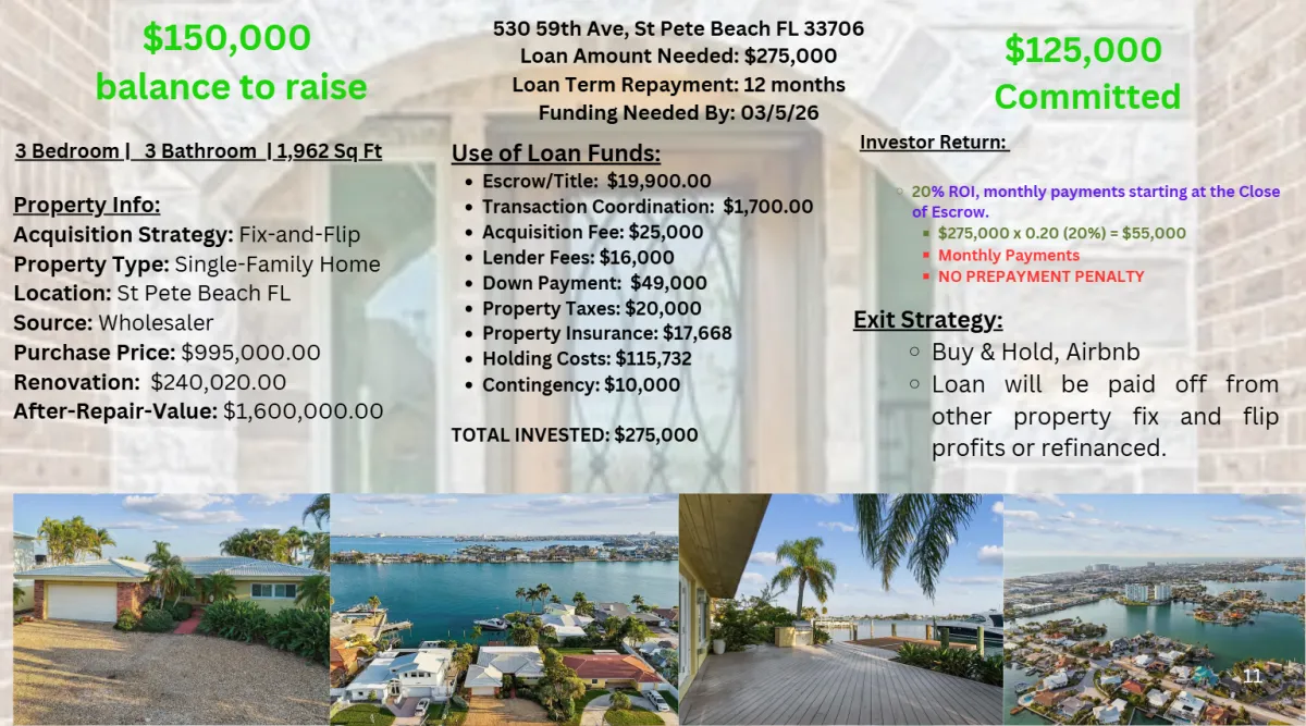 Discover our current Private Money Lending (PML) opportunities designed for investors seeking secure, high-yield, short-term real estate returns.